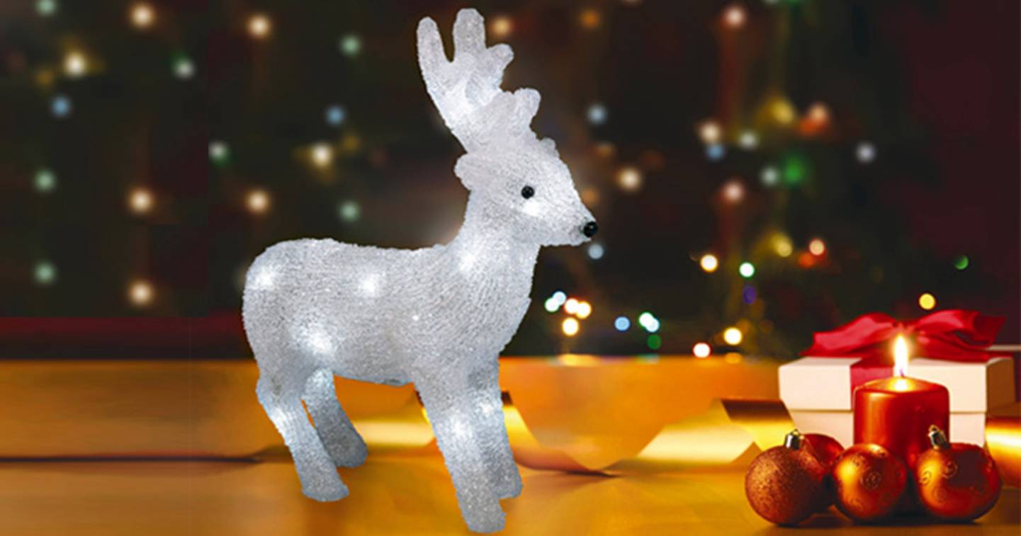 Professionelle weihnachtsbeleuchtung für außen und innen: Wie viel strom verbraucht weihnachtsbeleuchtung? Ein leuchtendes rentier, ein netter schneemann. Wie hoch sind die stromkosten?